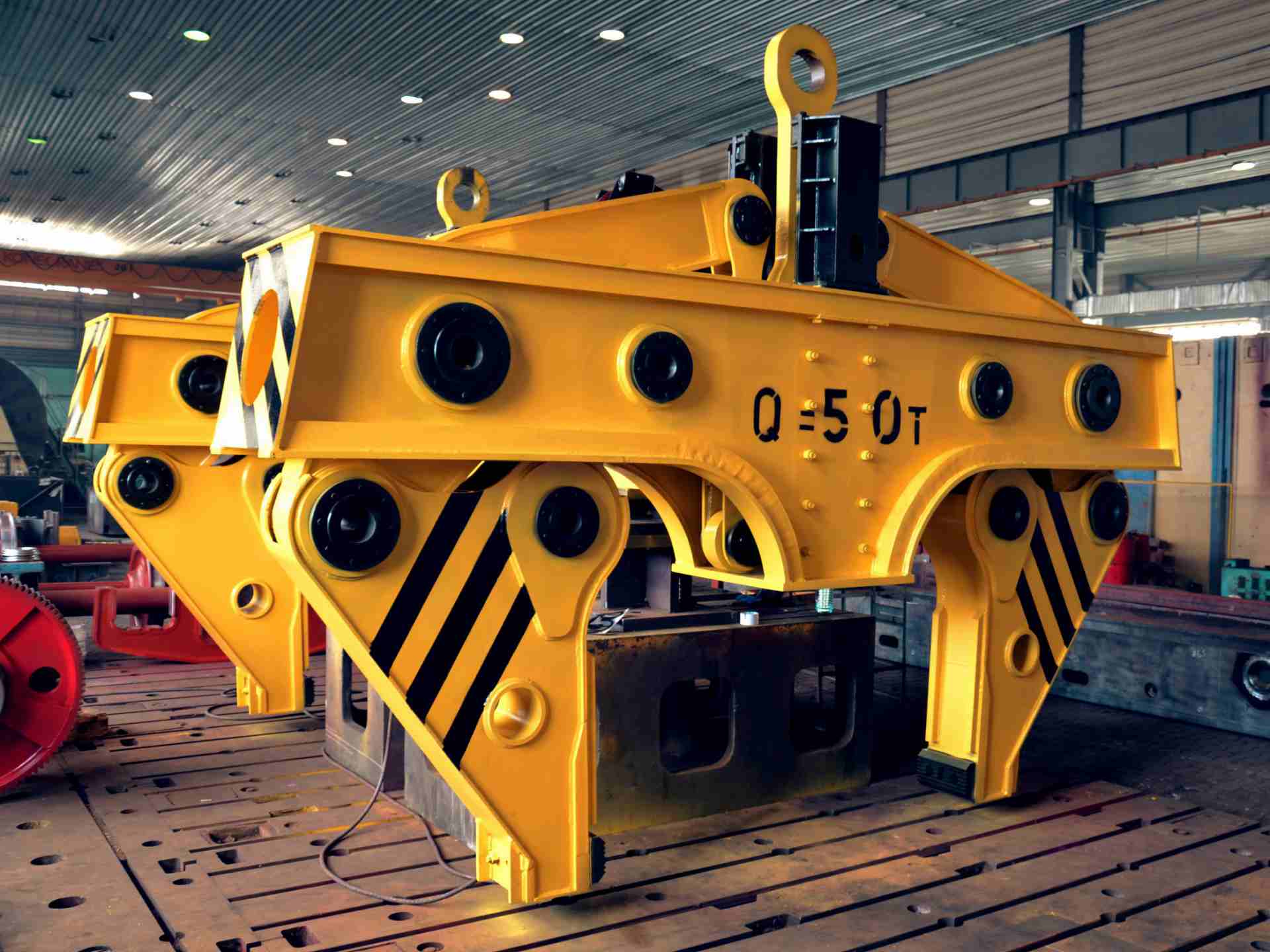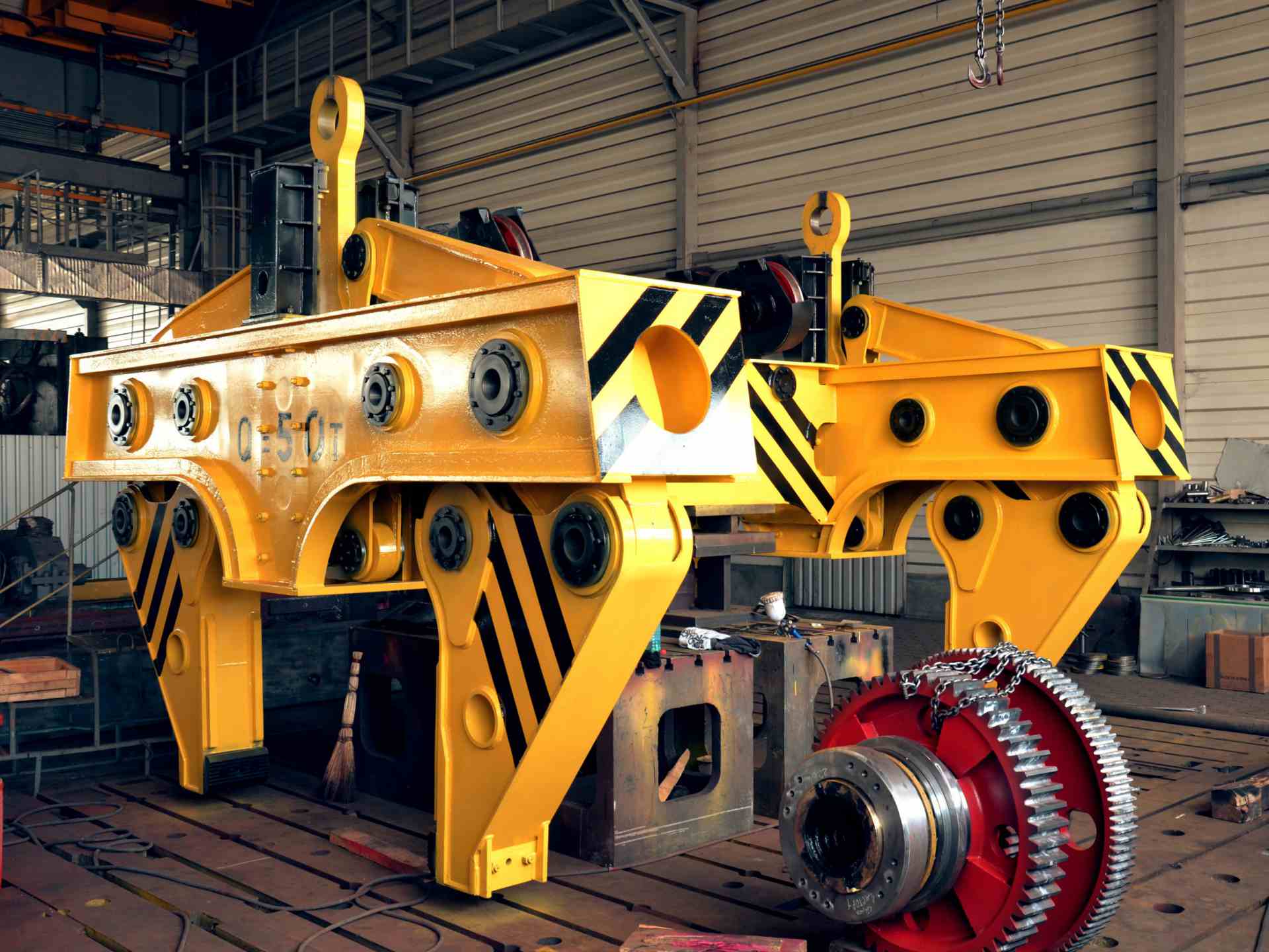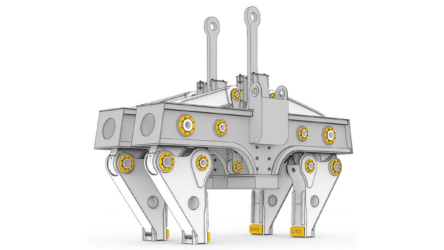 Клещи механические предназначены для технологической транспортировки слябов с максимальной температурой 600 градусов, съема с агрегатов и установки на них, работе на складе готовой продукции, погрузки и т.д.