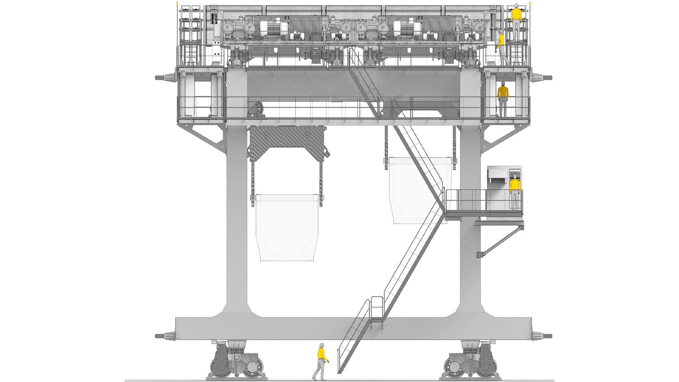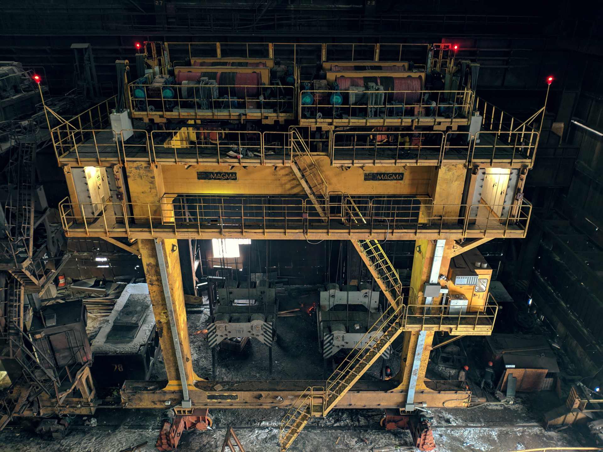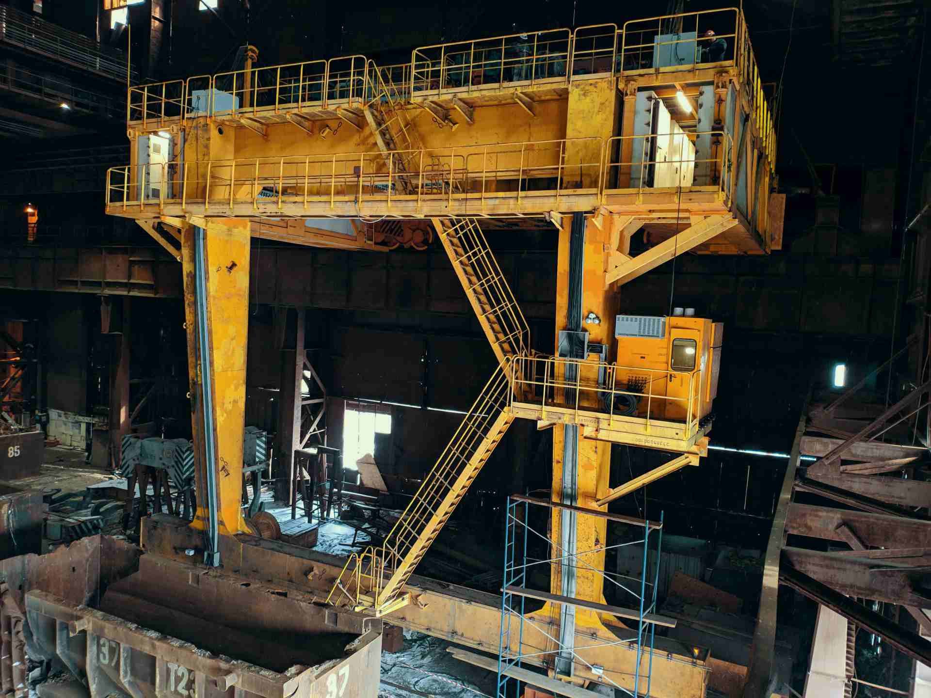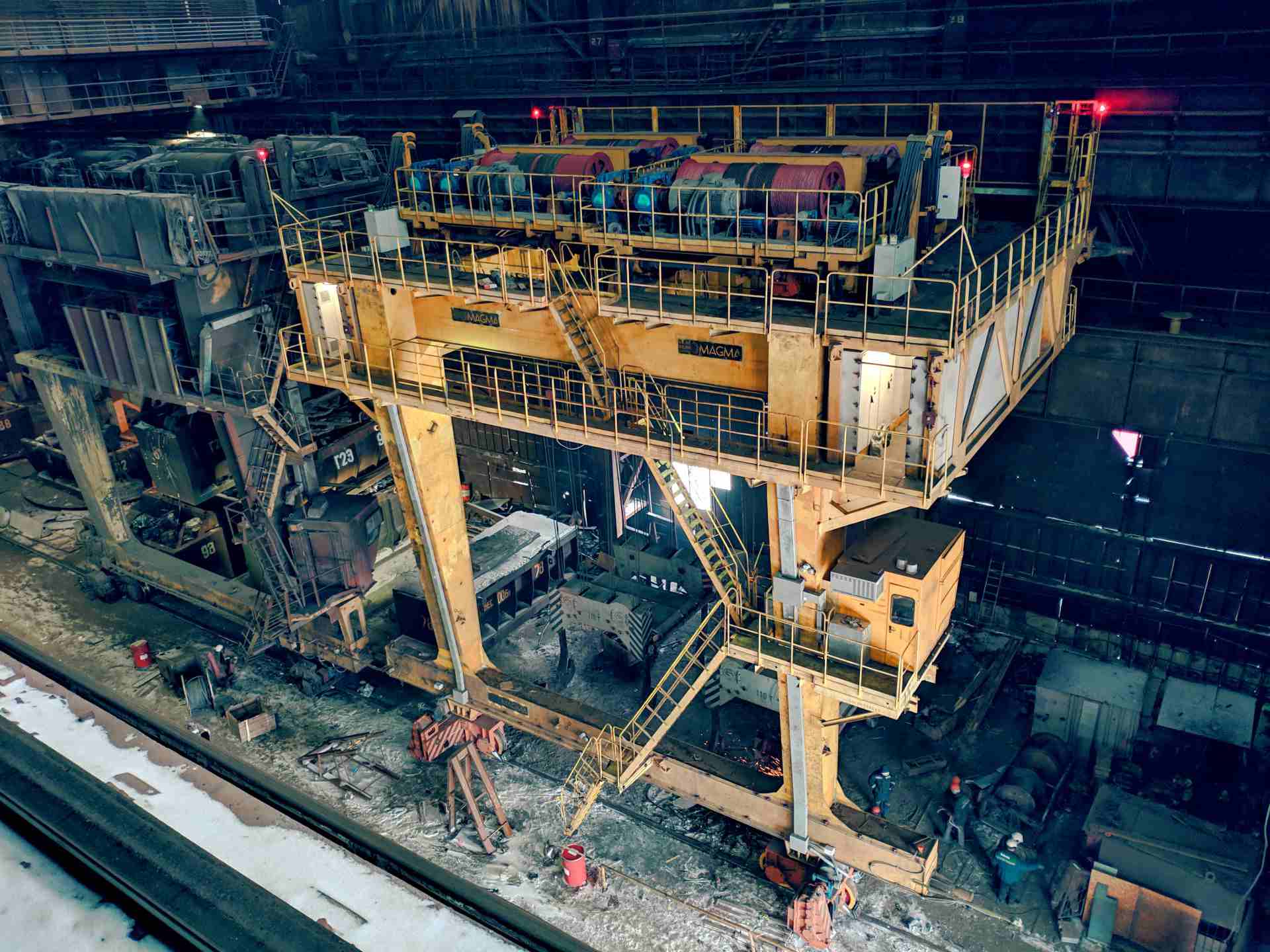 Для цеха с конвертерами вместимостью 300т. Машина с двумя совками, предназначенными для загрузки скрапа в конвертер. Изготовление, расчёты, базовый и детальный инжиниринг выполнены полностью силами предприятия.