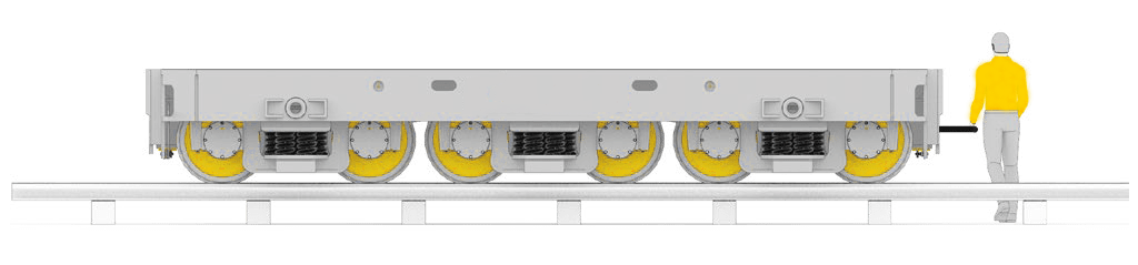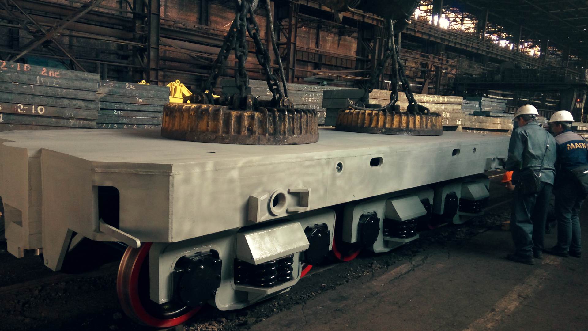 Несамоходная платформа предназначена для транспортировки изложниц. Передвигается при помощи тепловоза