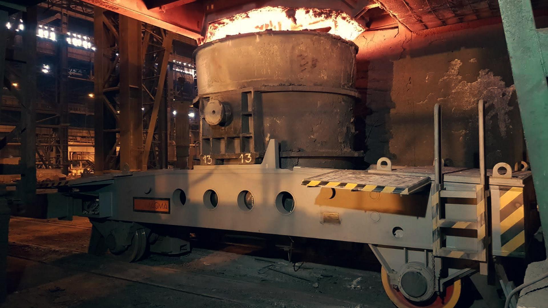 Самоходный сталевоз предназначен для транспортирования ковша с жидкой сталью вместимостью 160 т от конвертера в разливочный пролёт